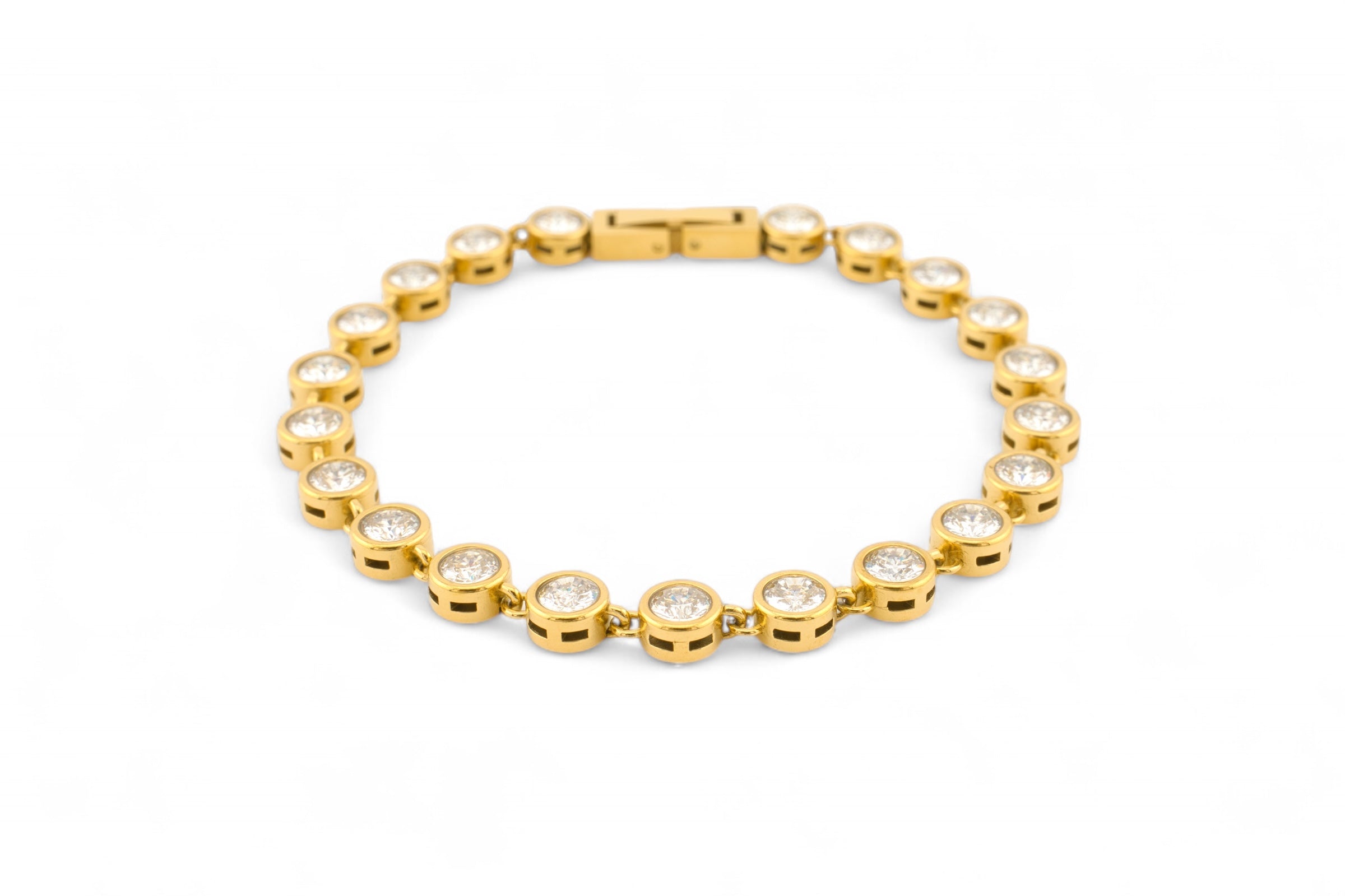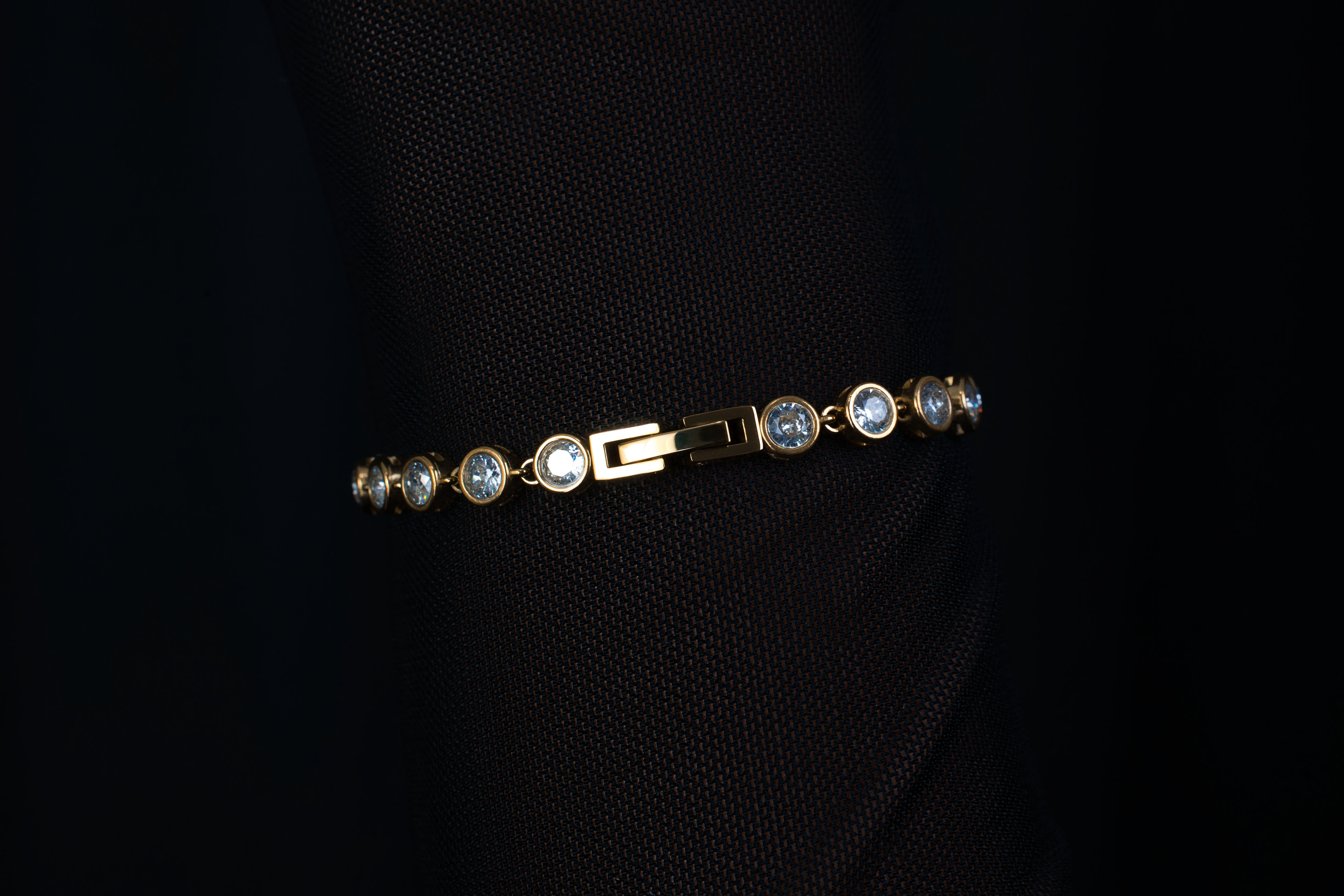 The Photonic Bracelet embodies this meaning with a continuous row of circular zirconias that glimmer like captured photons on your wrist. Each stone reflects the sparkle of the universe’s first light, while the sleek gold or silver stainless steel setting offers durability and timeless elegance. Wearing it is a reminder that you, too, carry your own light.