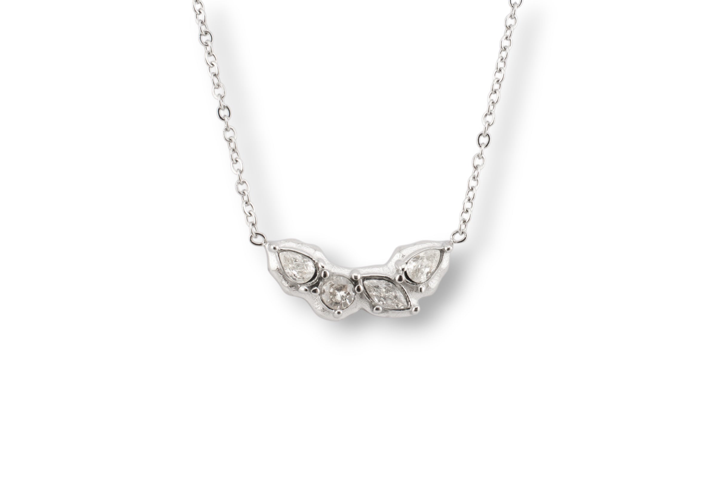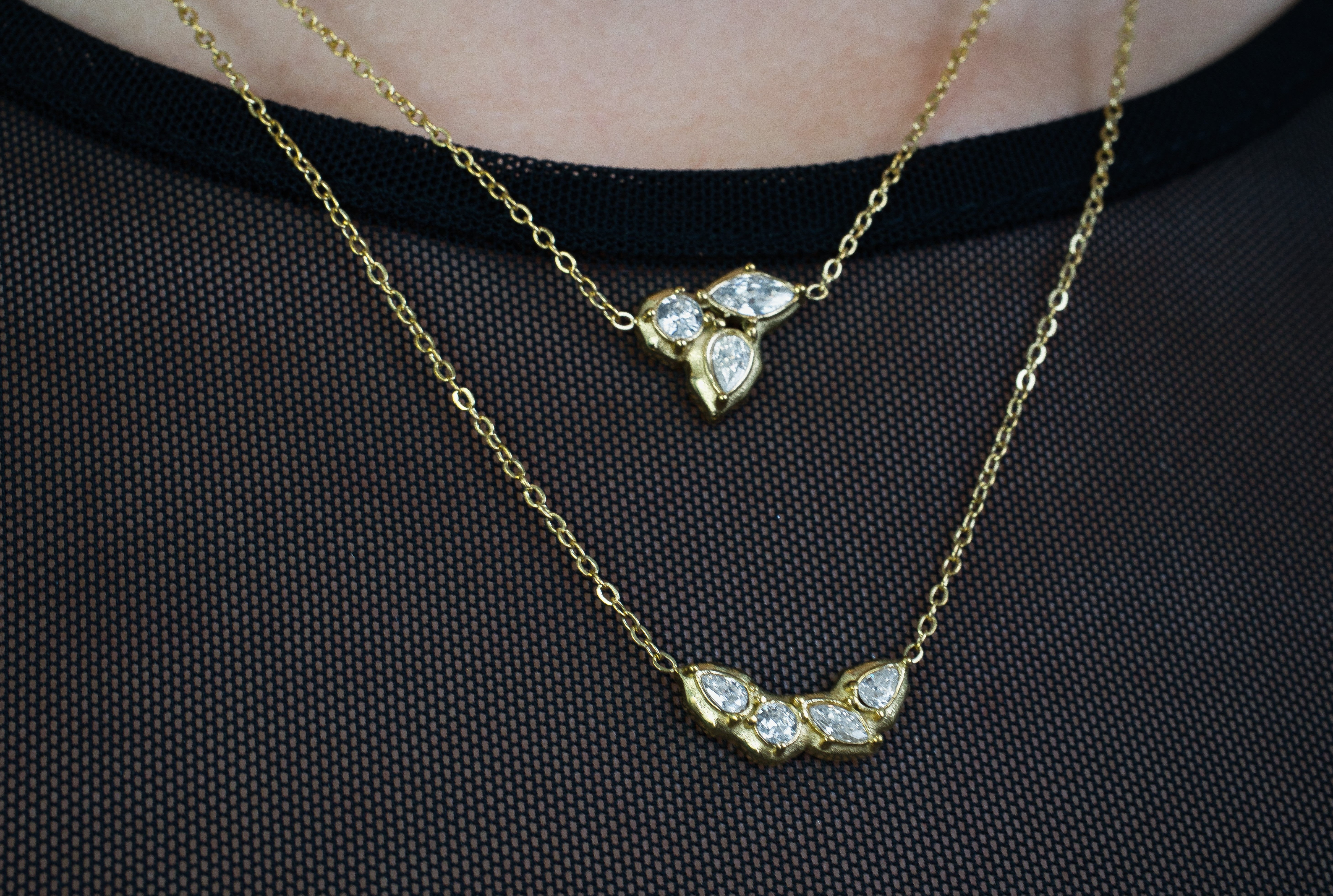 The Reion Zirconia Necklace draws inspiration from the Epoch of Reionization which is a critical era in the early universe when the first stars and galaxies ionized the surrounding hydrogen gas, ending the cosmic “dark ages.”