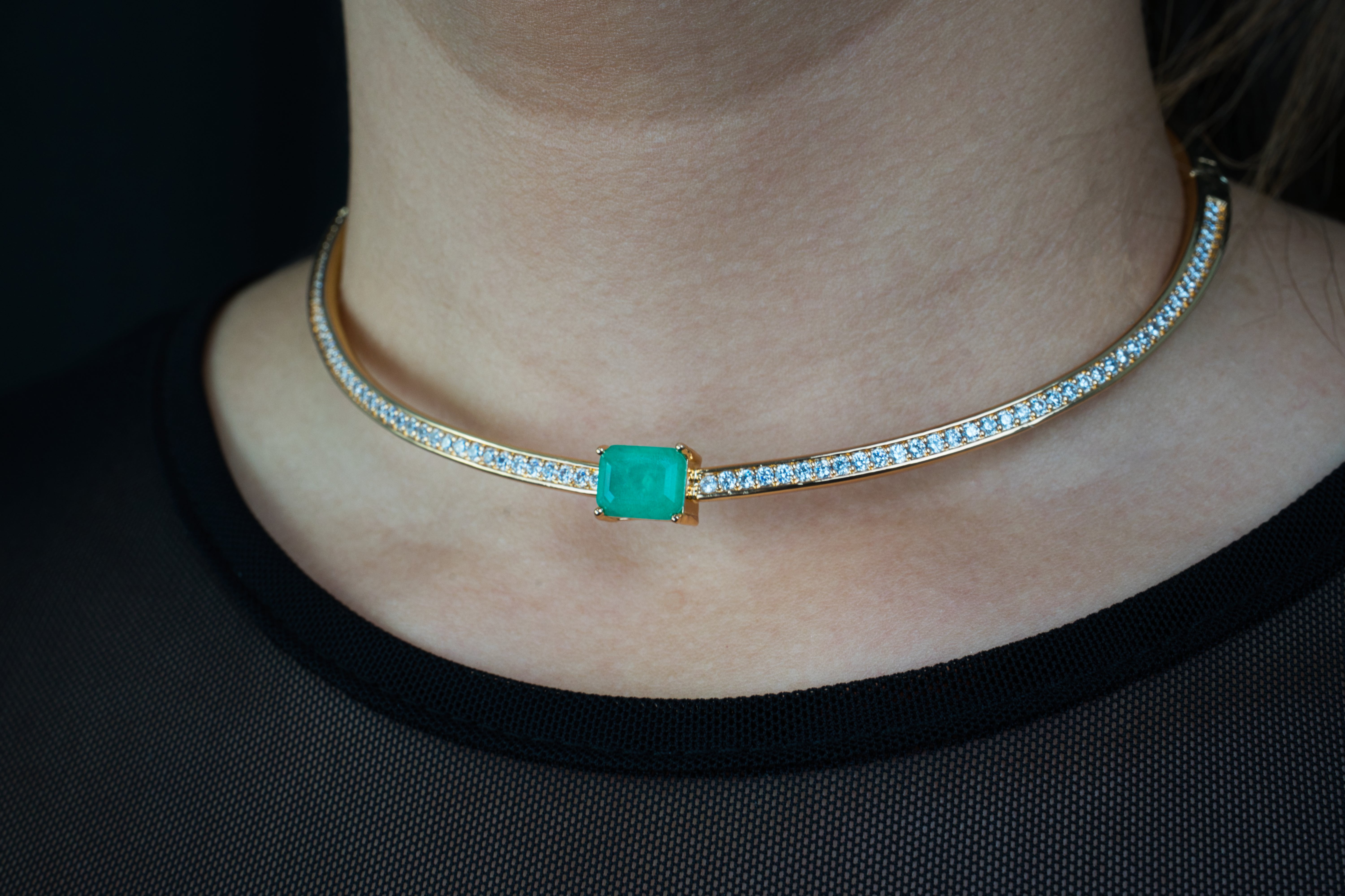 Its design consists of precision-set zirconias, engraved into the surface, mimicking the scattered light of young, metal-rich stars as byproducts of stellar nucleosynthesis. At the center lies a square-cut green stone, representing the central mass where matter accumulates and energy intensifies in a star.