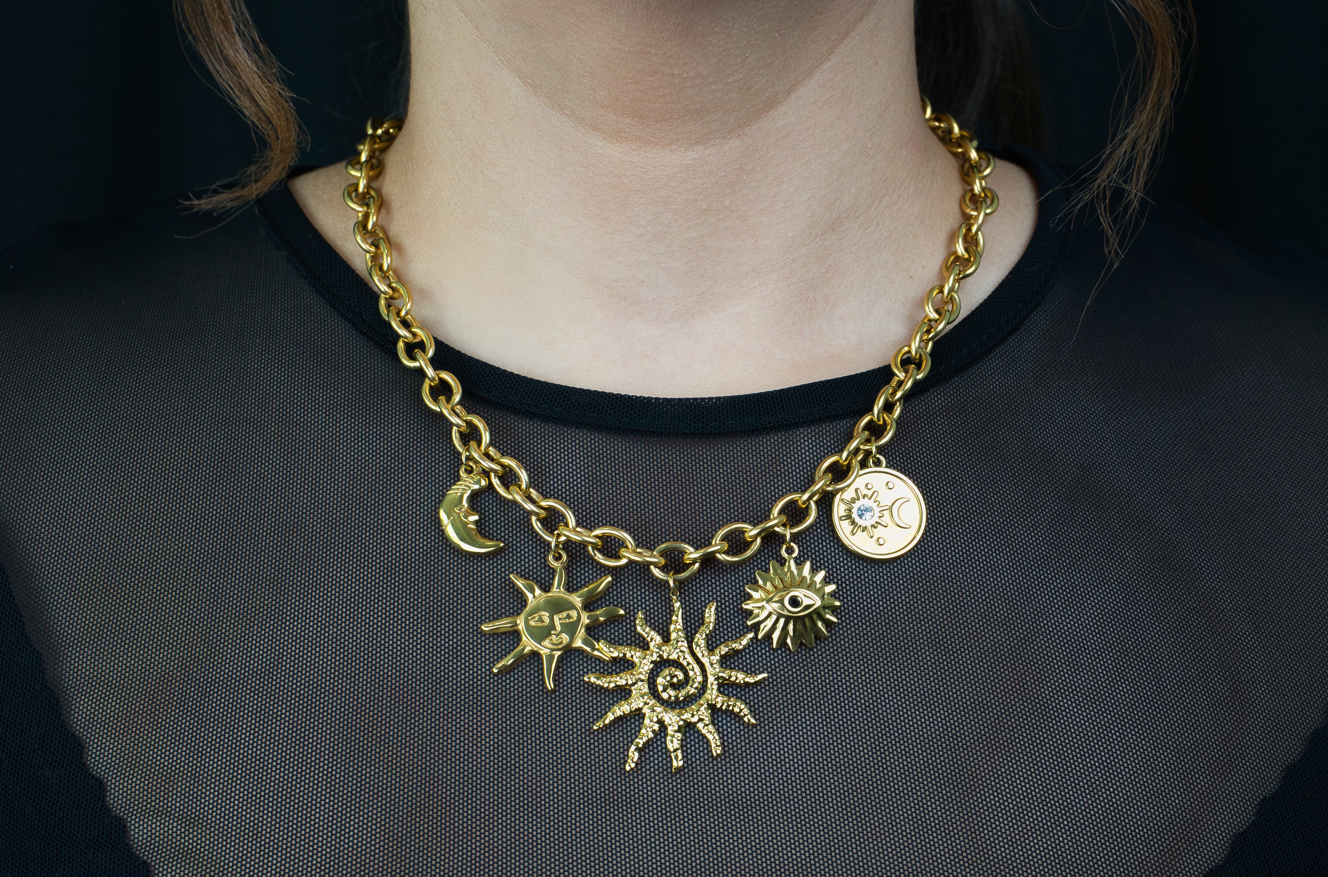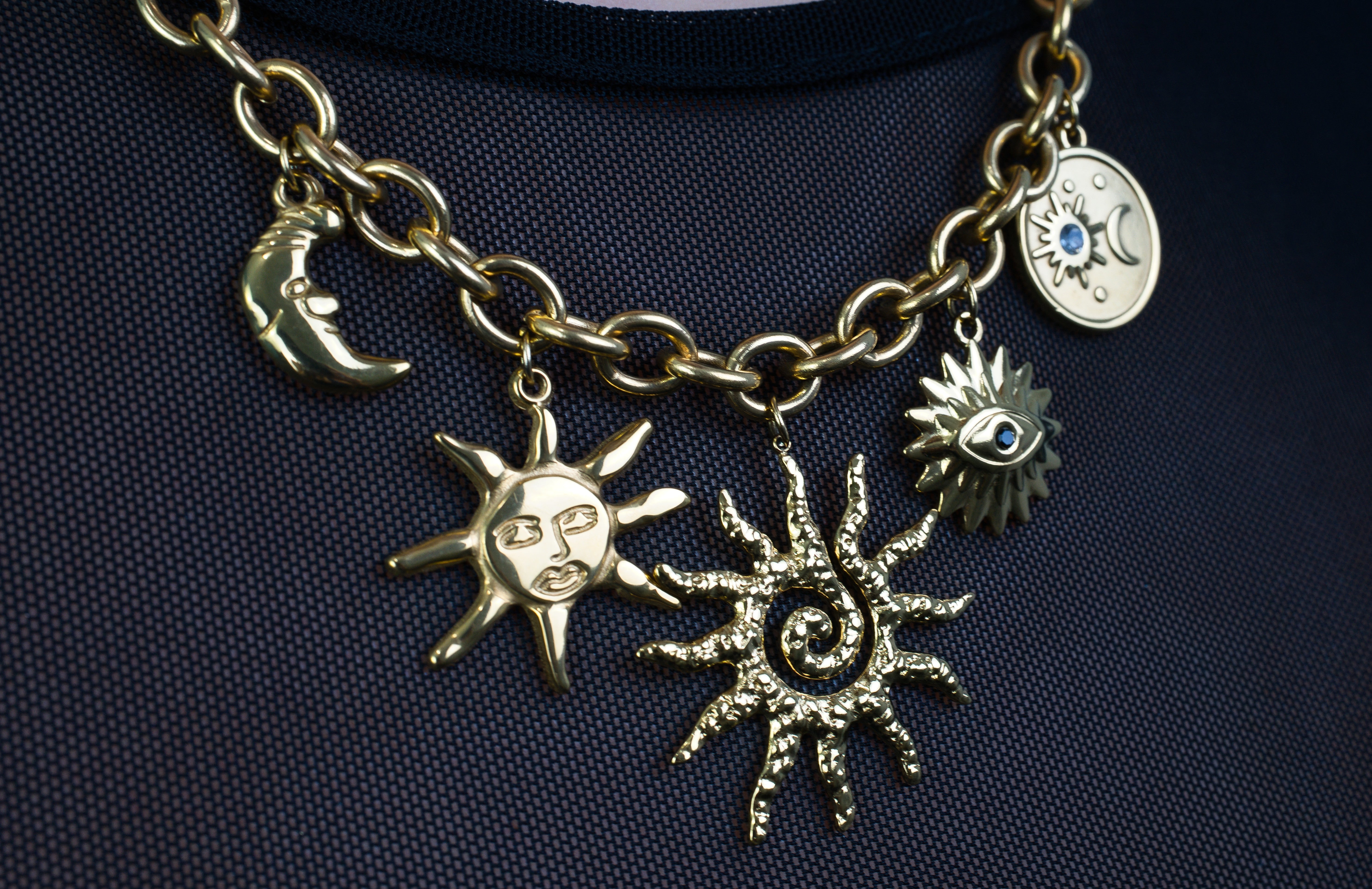 The Stellar Bloom Charm Necklace is a tribute to this phase of cosmic evolution, a maximalist representation of the processes that drive the formation of elements in the universe.
